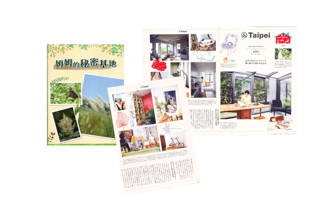 『どうぶつと動物園』、『Hanako』、『すばる』、『ELLE JAPON』、『SPUR』、『&Premium』、『BRUTUS』、『Pen』、『日経おとなのOFF』、『PRESIDENT WOMAN』、『HERS』、『JTB台湾 完全版』、『週刊女性』、UCC COFFEE JOURNAL『GOOD COFFEE SMAIL.』、『HugMug』、春陽堂書店『現地発・台湾ルーローハンとお米料理』、双葉社『グルメも美容もお土産も! 地元価格で楽しむ台湾コスパ旅』、辰巳出版『秘密にしたい! 台湾の本当においしいお土産』、日東書院本社『あっさり軽やか。台湾家庭の毎日ごはん』